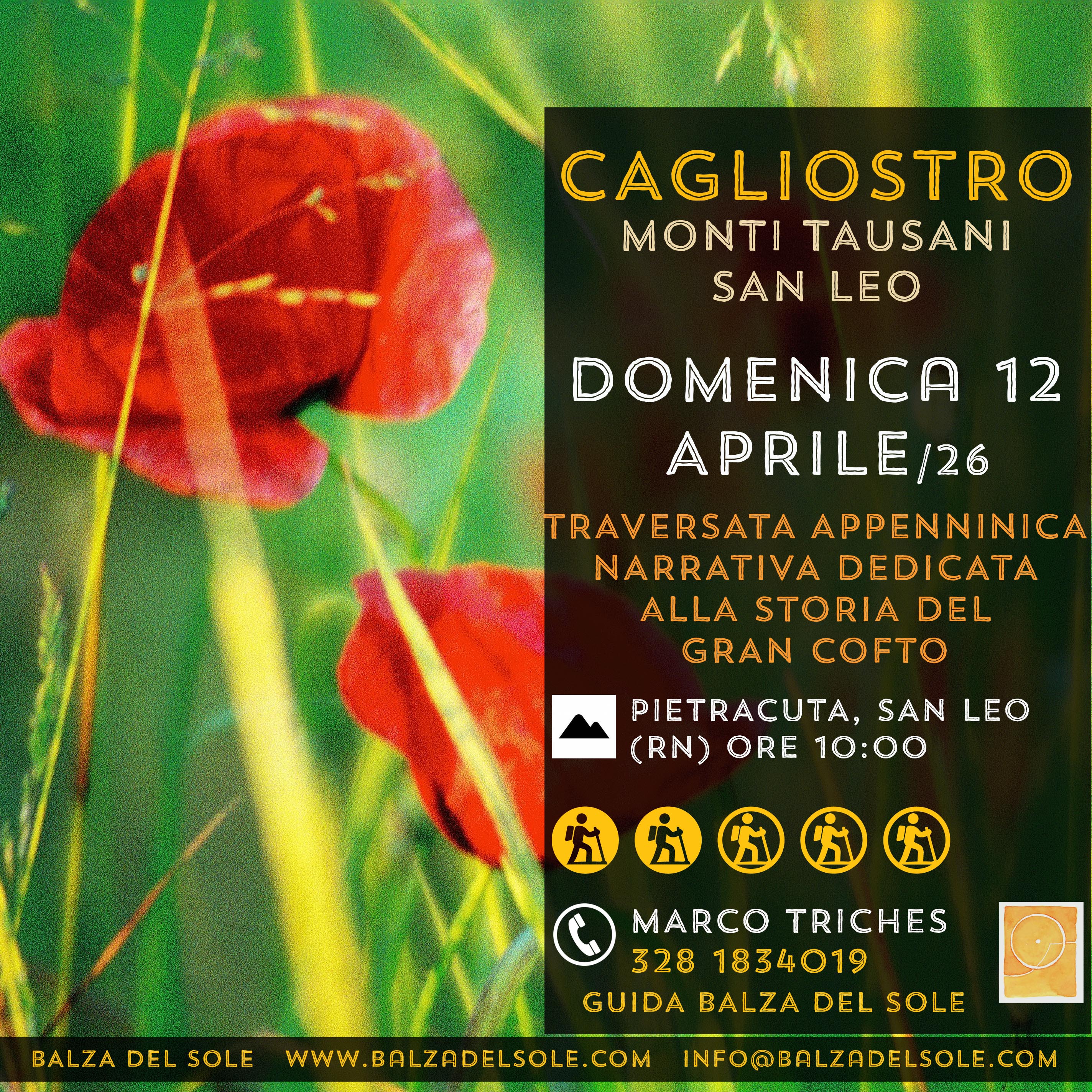 Ripercorreremo la sua parabola umana, fatta di luci e ombre, magia e inganno, con una panoramica traversata lungo la cresta dei monti Tausani, che conduce proprio alla fortezza di San Leo.