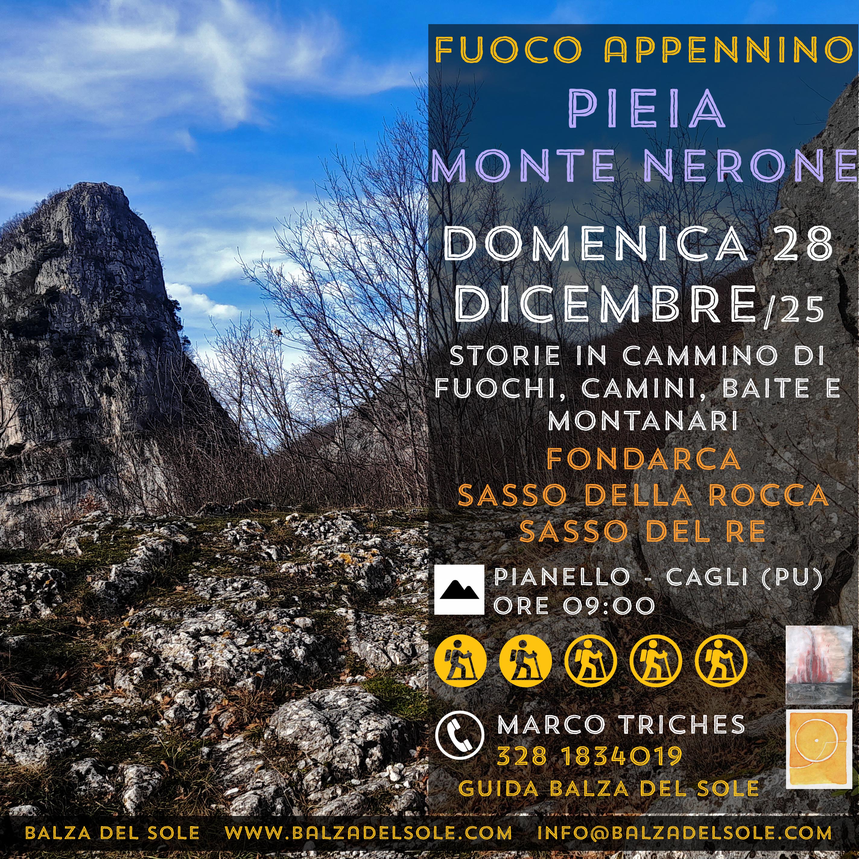 Escursione tra i sentieri del versante meridionale del monte Nerone con un percorso tra borghi, boschi e monumenti naturali. Itinerario narrativo unico, tra prati e crinali, tratti rocciosi, boschi e la calorosa accoglienza del borgo di Pieia, quasi sospeso nel tempo. Ci dedichiamo un viaggio alla fine dell’anno nel generoso Monte Nerone. Lungo il percorso ampi spazi ai racconti ambientati di Fuoco Appennino