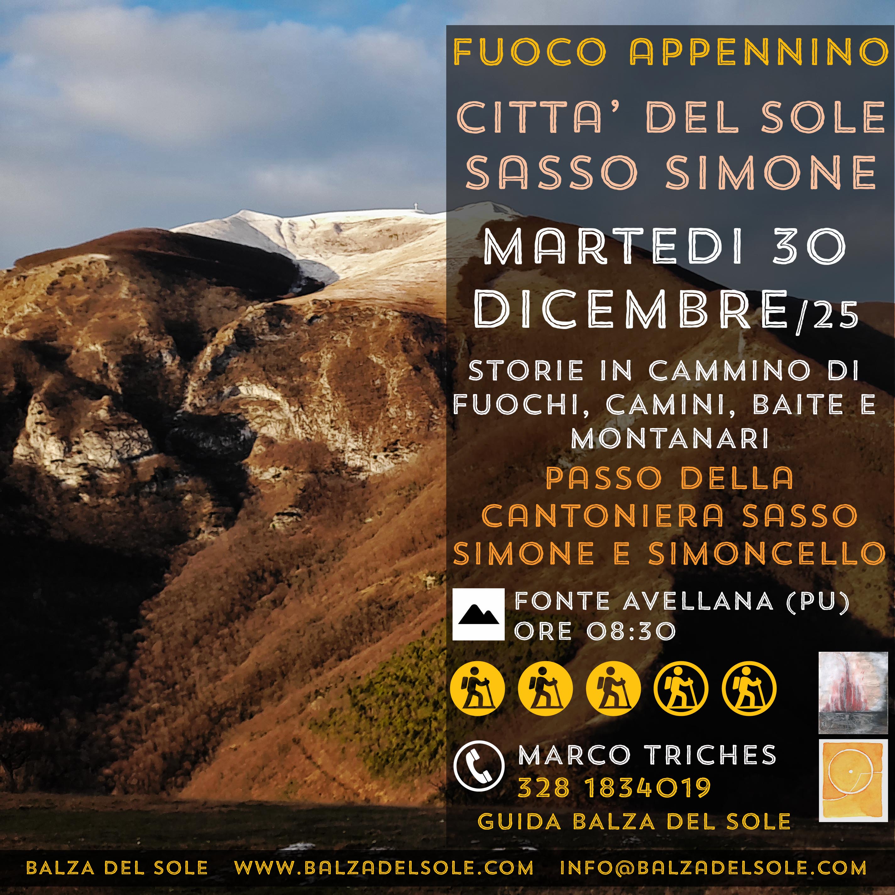 29 Dicembre: Sasso Simone, Città del Sole Classico giro ad anello dei due sassi: Sasso Simone e Simoncello, tra boschi tipici dell’Appennino, sentieri storici e visita ai resti della Città del Sole, terre di confine.